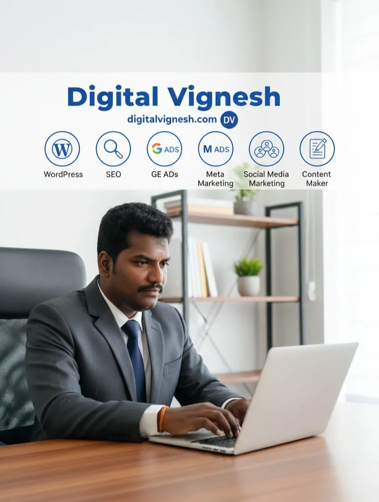 Digital Vignesh helps small businesses in Trichy grow online with SEO, website design, social media & Google Ads. Simple, effective digital solutions.